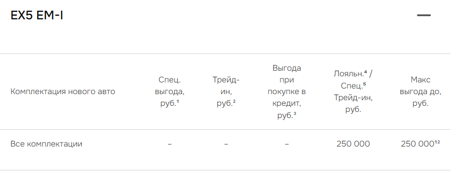 ¹² Выгода в размере 250 000 рублей указана для автомобилей «Geely EX5 EM-i» и состоит из выгоды по программе «Лояльный/Специальный Трейд-ин» в размере 250 000 рублей. Программа действительна с 01.02.2026 г. по 28.02.2026 г.