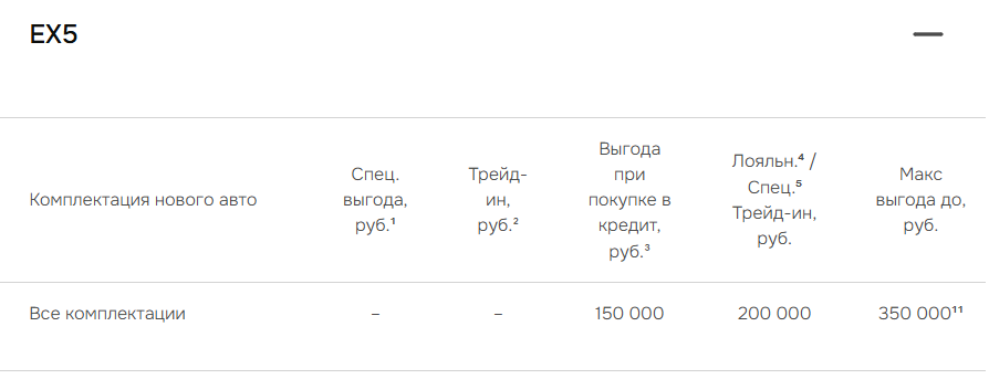 ¹¹ Выгода в размере 350 000 рублей указана для автомобилей «Geely EX5» и состоит из выгоды при покупке в кредит в размере 150 000 рублей и выгоды по программе «Лояльный/Специальный Трейд-ин» в размере 200 000 рублей. Программа действительна с 01.02.2026 г. по 28.02.2026 г.