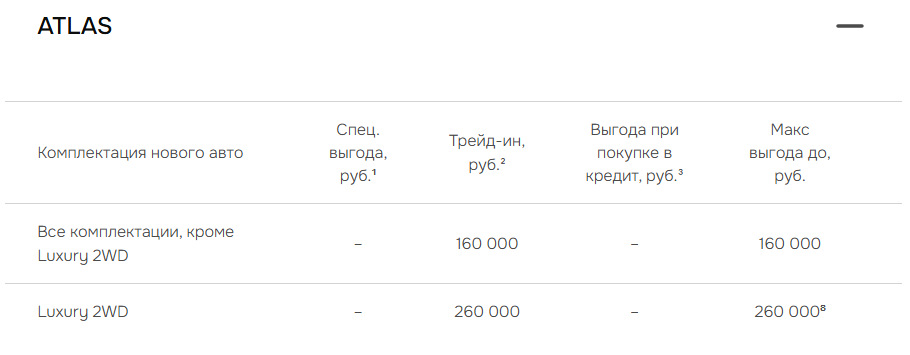 ⁸ Выгода в размере 260 000 рублей указана для автомобилей «Geely Atlas» (комплектация Luxury 2WD), и состоит из выгоды по программе «Трейд-ин» в размере 260 000 рублей. Программа действительна с 01.02.2026 г. по 28.02.2026 г.
